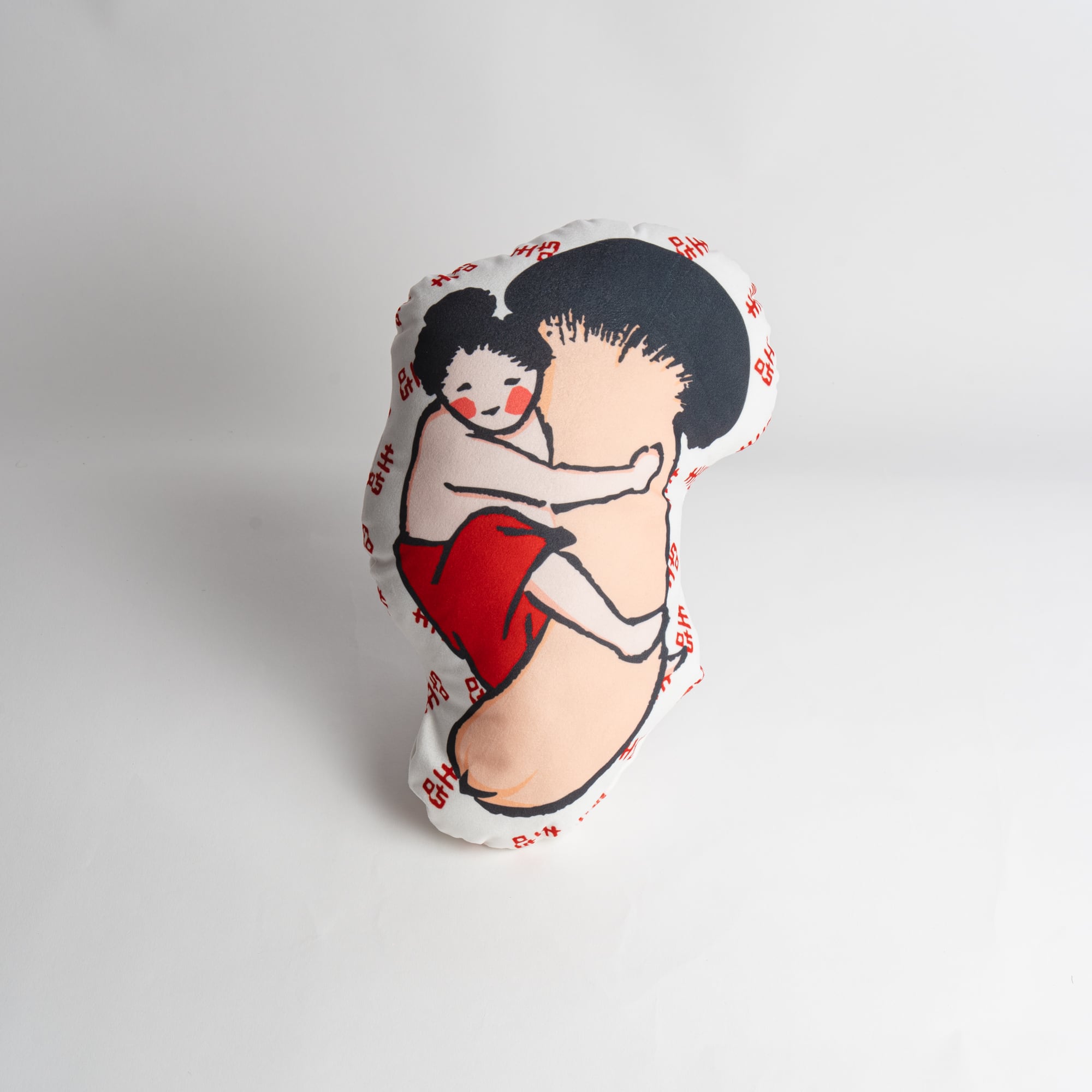 絵師不詳『開談花の雲』登場するまつたけを大切そうに抱えたかわいらしいキャラクターをクッションにしました。